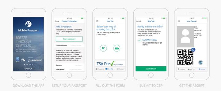 The Mobile Passport app speeds you through U.S. Customs and Border Protection at 1 cruise port and 24 airports. Go ahead and download it for free from the US government site to your smartphone before traveling overseas. You scan your passport before you leave home. When you land just open the app, answer few questions for the customs, after which it gives you a paperless receipt right on your smartphone. The lines are shorter for people using this app and can save valuable time if you need to make a tight connection. You still need to present your passport when you arrive back to the U.S., but what a time saver it is.