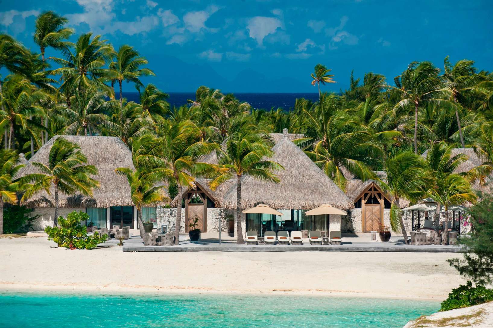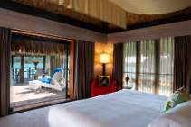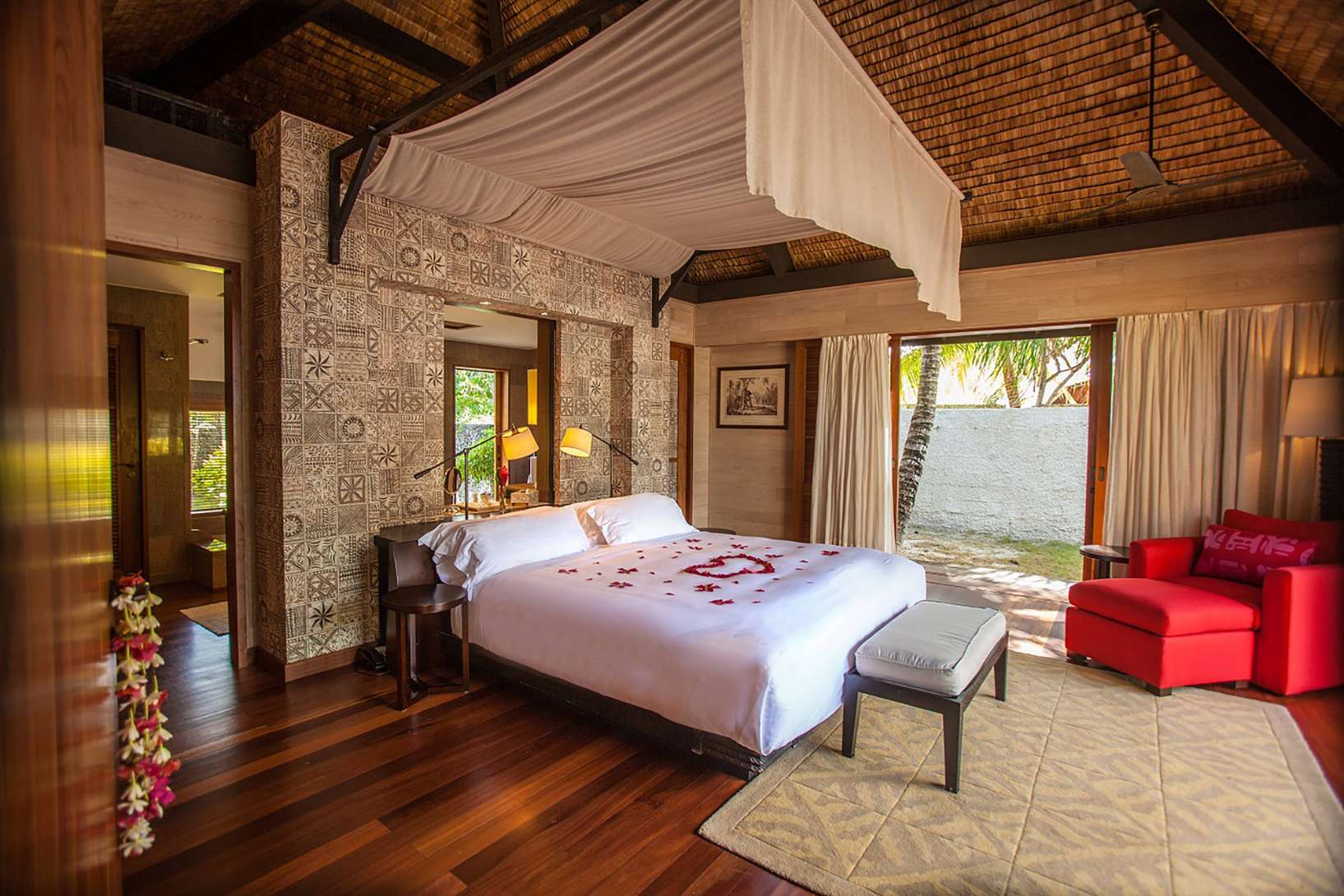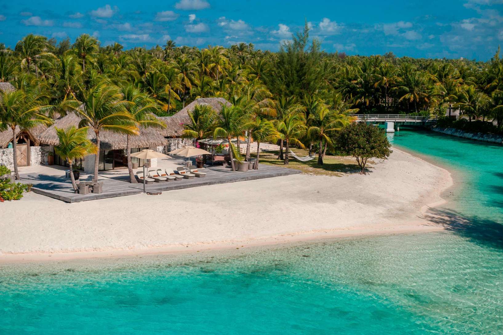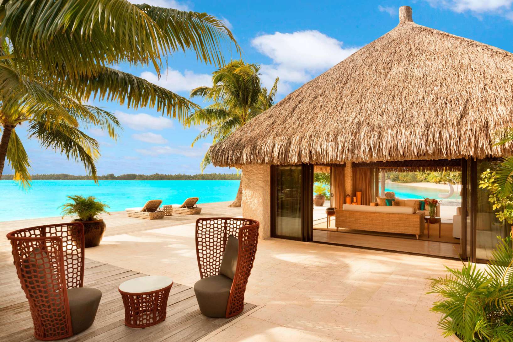 This private island resort set on 44 acres features the largest standard overwater villas in the South Pacific at 1,550 square feet or 144 square meters, ideal for honeymoons. The large bedrooms include a king- size bed and spacious terrace with private dining gazebo overlooking the lagoon, exclusive 24-hour St. Regis Butler Service and more. Two-bedroom overwater villas are available for two couples or families.