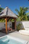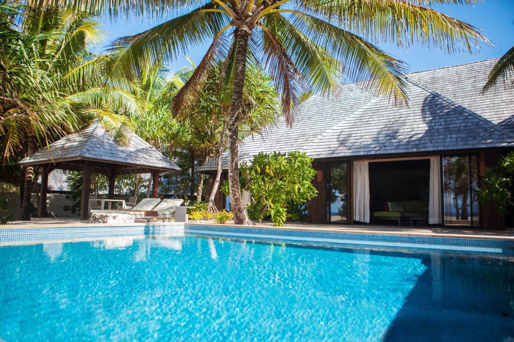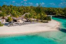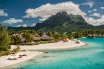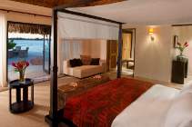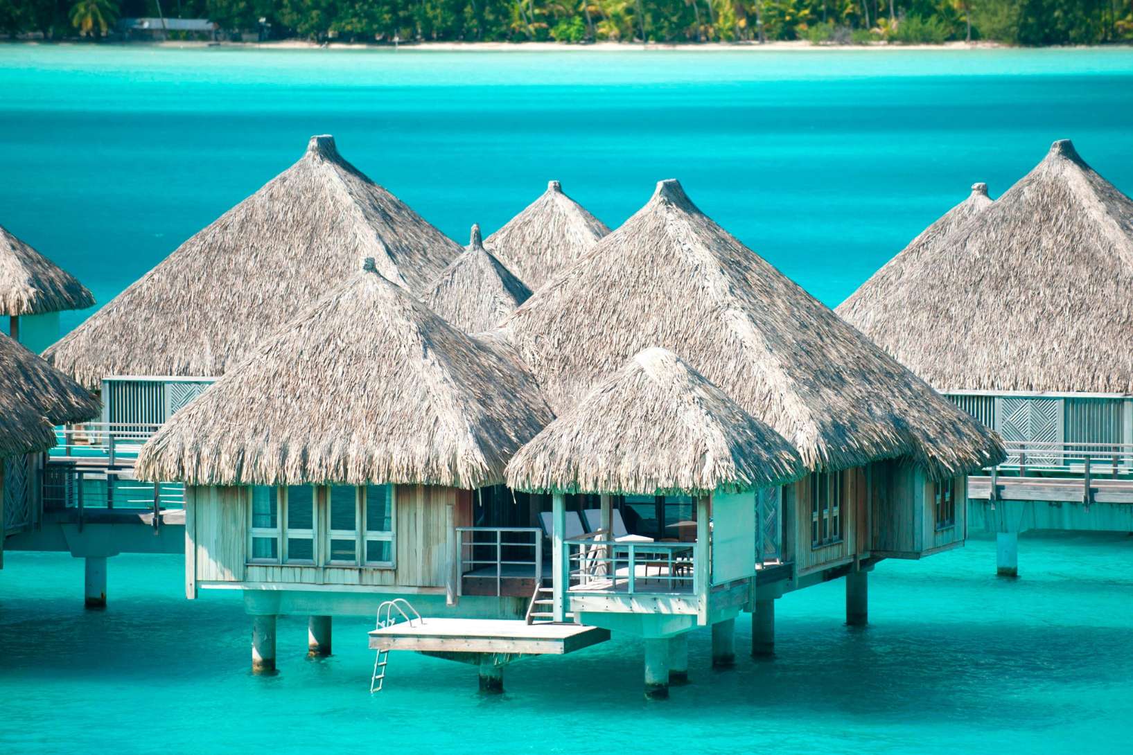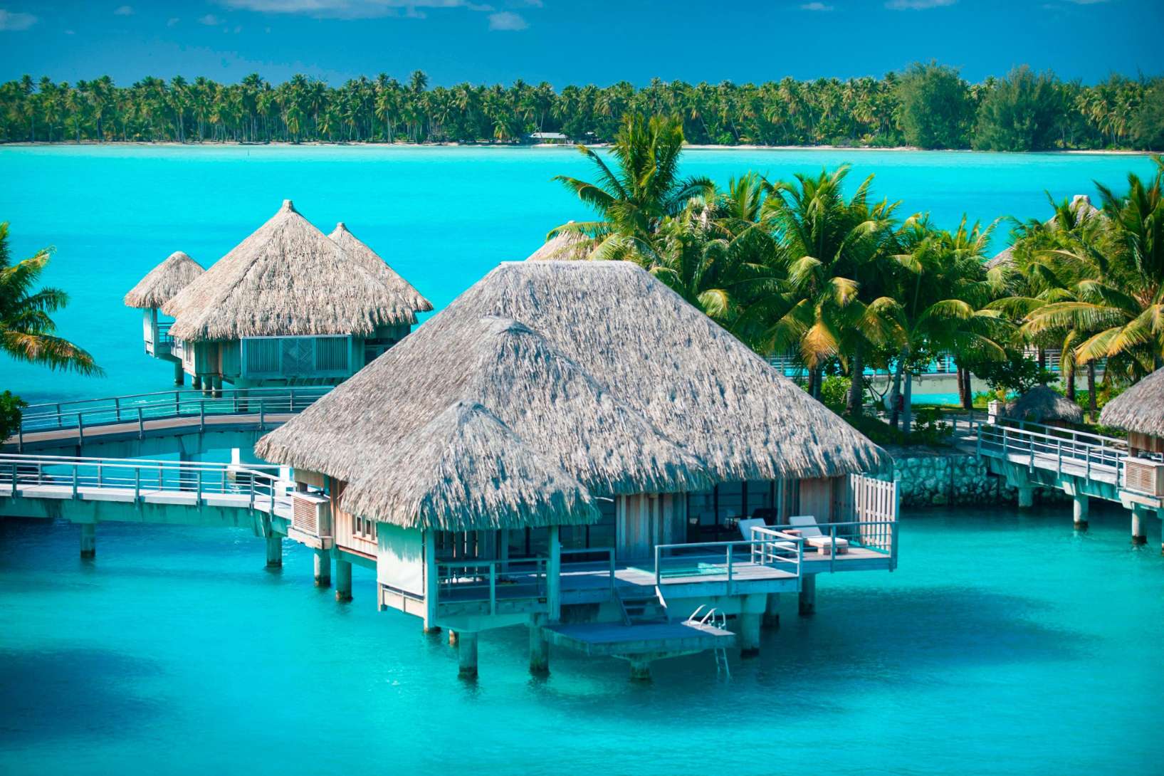 This private island resort set on 44 acres features the largest standard overwater villas in the South Pacific at 1,550 square feet or 144 square meters, ideal for honeymoons. The large bedrooms include a king- size bed and spacious terrace with private dining gazebo overlooking the lagoon, exclusive 24-hour St. Regis Butler Service and more. Two-bedroom overwater villas are available for two couples or families.