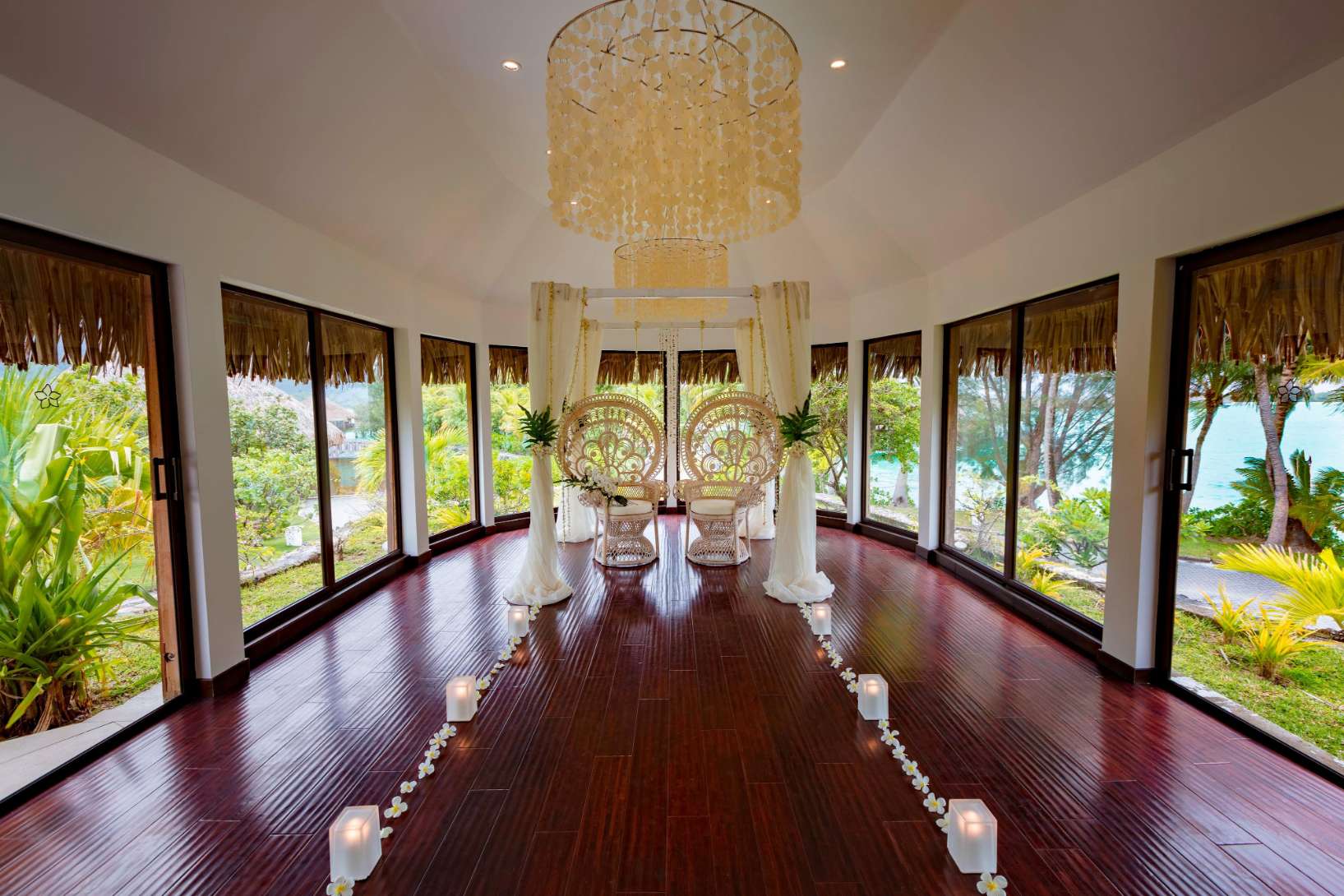 Six miles from the Motu Mute Domestic Airport. Edged by powdery sands and a tranquil lagoon.
